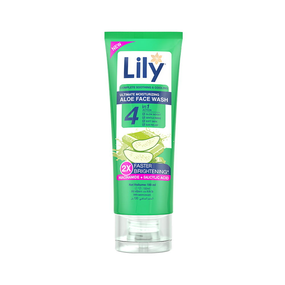 Lily Aloe Gel Face Wash, a gentle, soothing solution for irritated skin. Enriched with aloe vera extract, niacinamide, and salicylic acid, it effectively hydrates, moisturises and soothes while promoting a brighter complexion. Experience the nourishing benefits of aloe vera.