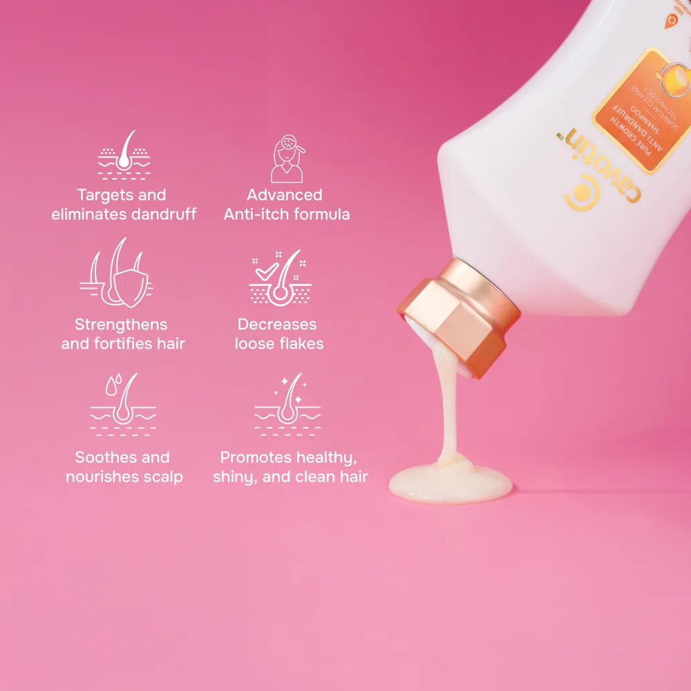| Cavotin Pure Growth Anti-Dandruff Shampoo revitalizes your hair’s natural strength. This all-in-one solution provides comprehensive care, addressing dandruff cleansing, itch relief, and strengthening strands for all hair types. Infused with a delightful ginger and honey fragrance, it transforms your hair by reducing flakes, soothing the scalp, and leaving it irresistibly healthy and shiny. |