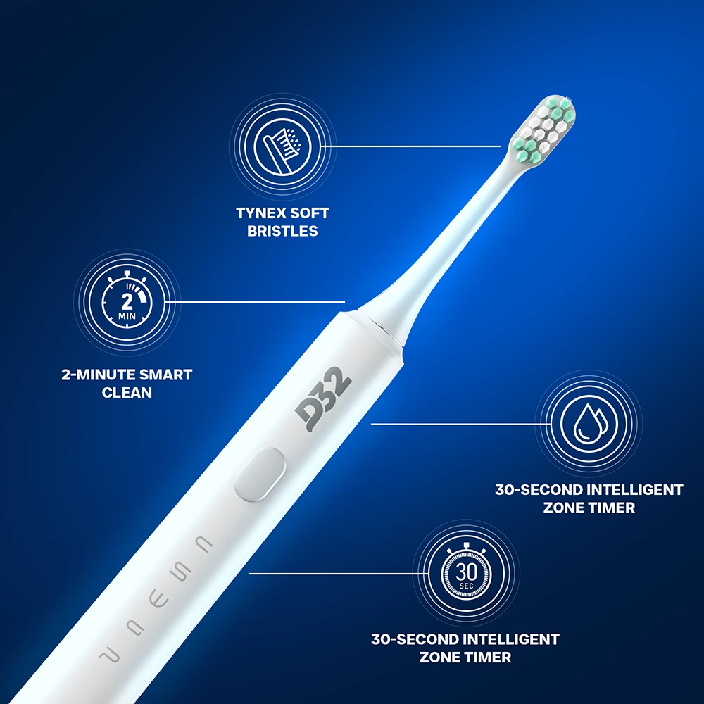 30-Second Intelligent Zone Timer: Short vibrations every 30 seconds prompt you to switch brushing areas for a balanced, thorough clean.