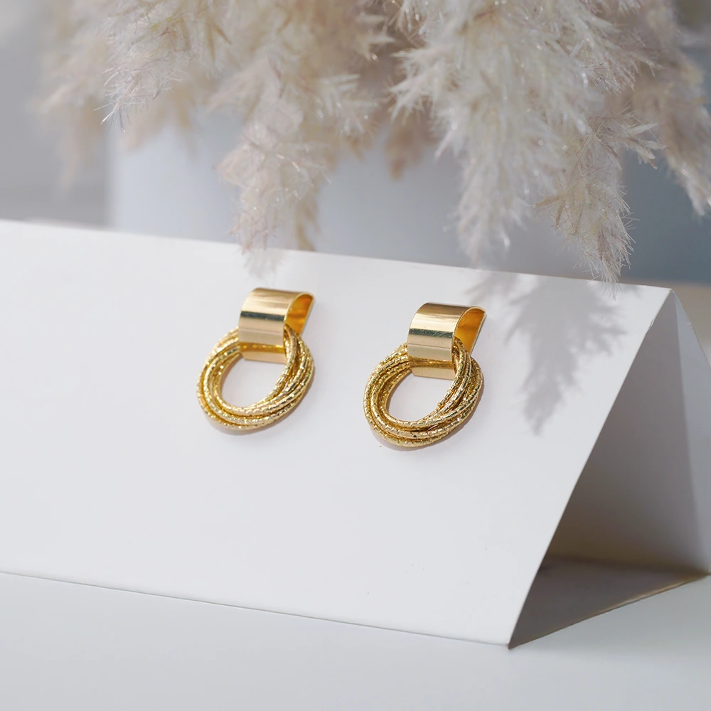 Glorin Earring Lustra Ring shines with golden spirals that reflect the light from every angle, adding subtle radiance to any look.