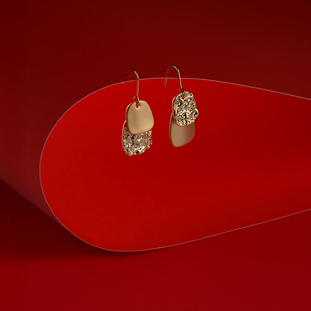 Glorin Earring Solene contrasts smooth polish with textured shine, bringing together two gold elements in a refined balance.