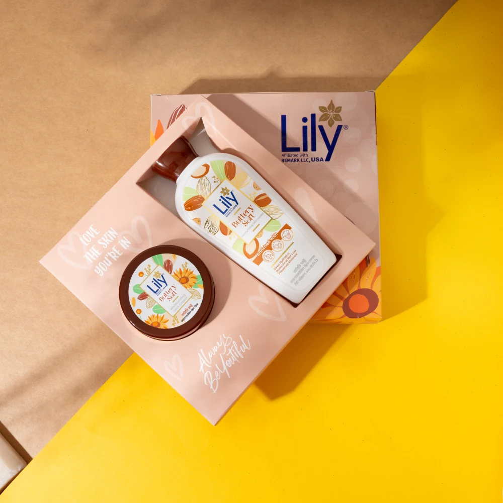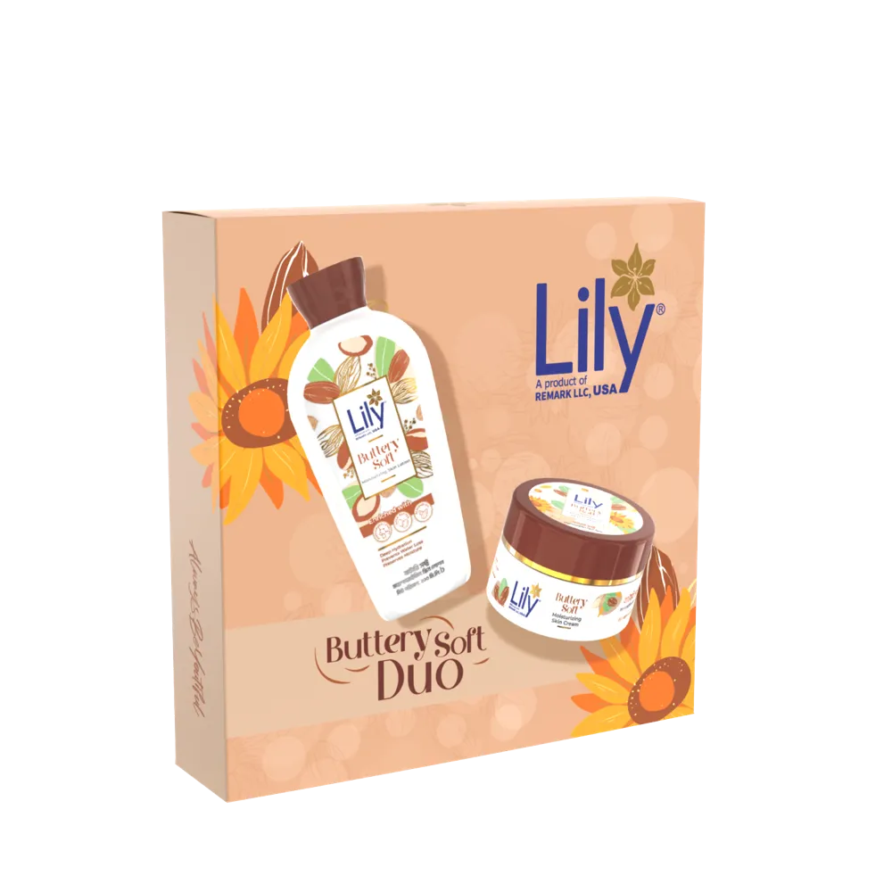 Experience the luxurious touch of the Lily Buttery Soft Duo, a nourishing gift box featuring a lotion and cream infused with shea butter and almond oil. Indulge in deep moisturization for irresistibly supple, glowing, and nourished skin.