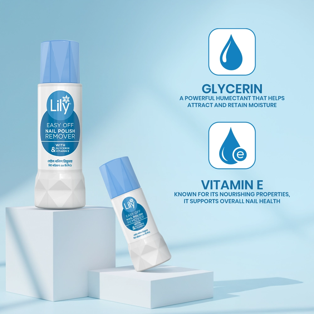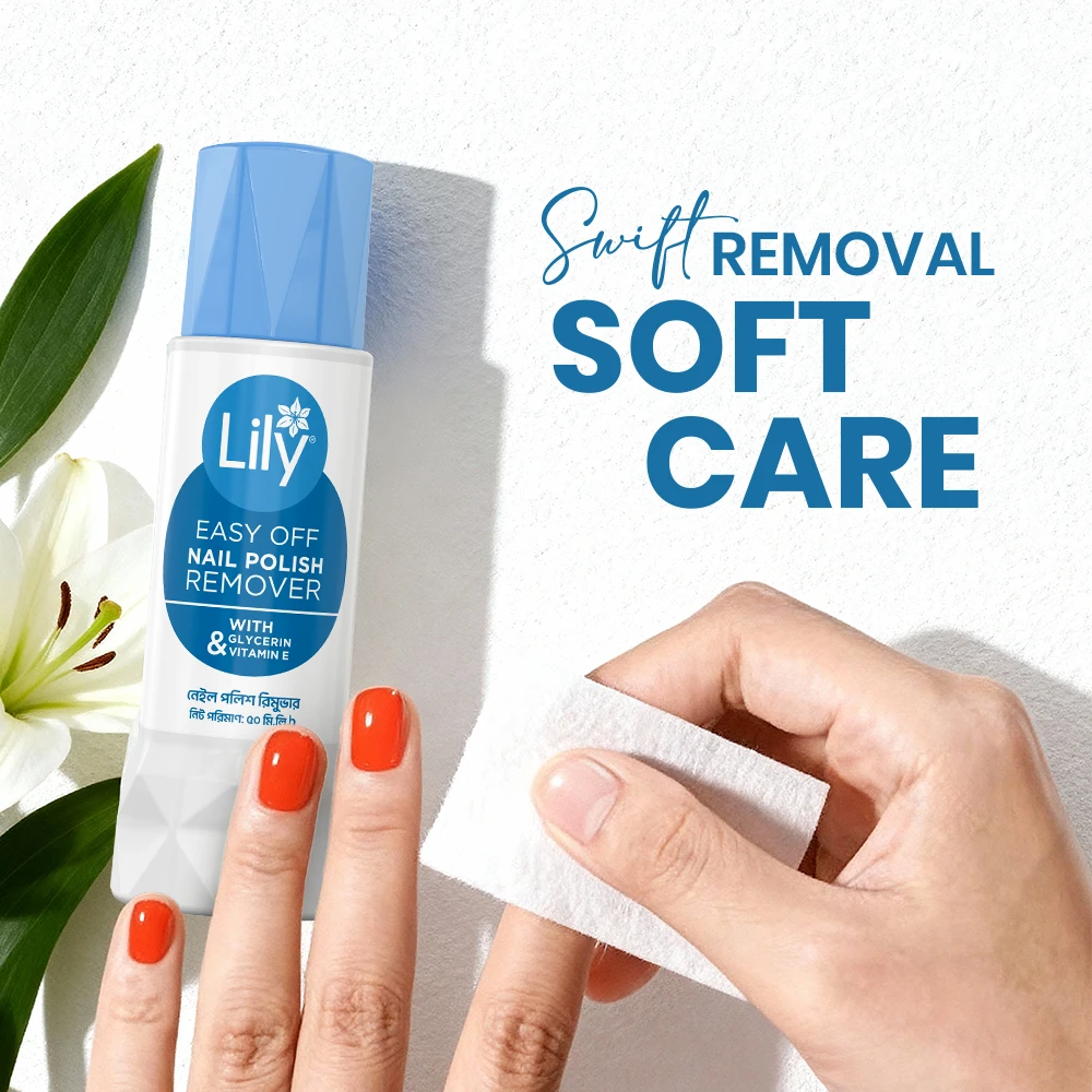 Lily Easy-Off Nail Polish Remover offers a powerful solution for effortlessly removing your nail polish. Expertly formulated for quick and effective removal, it easily dissolves even the most stubborn formulas, including glitter and gel polishes, ensuring a smooth and efficient nail care experience.