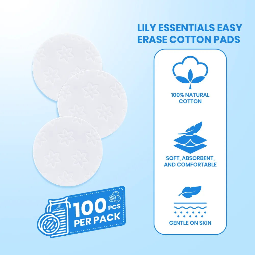 The Easy Erase Cotton Pads are soft and gentle, with an enhanced surface area for better absorbency. Made from 100% natural cotton, these pads offer a smooth, comfortable surface that effectively applies or cleanses skincare and makeup, making them ideal for daily use.