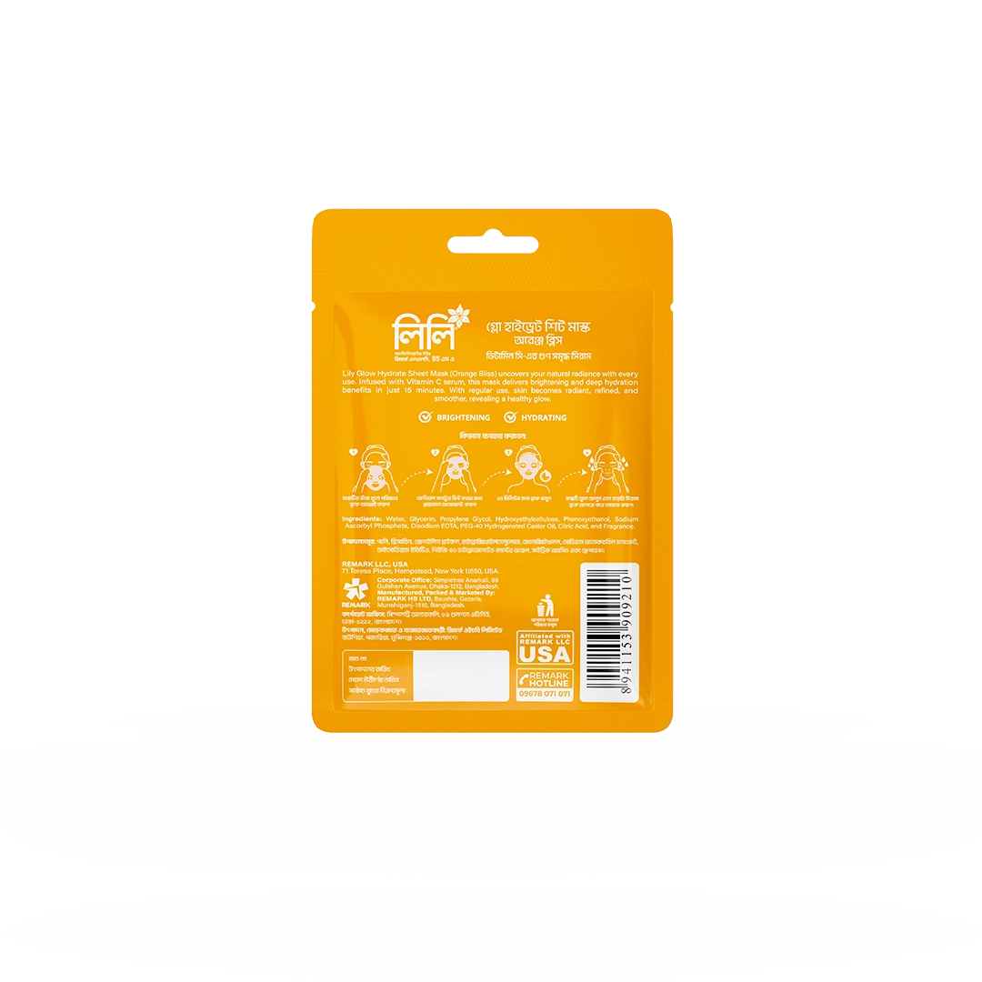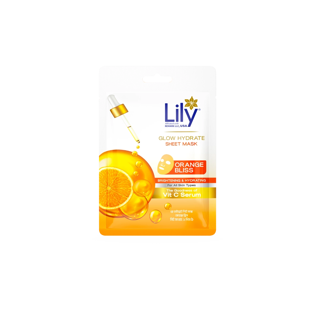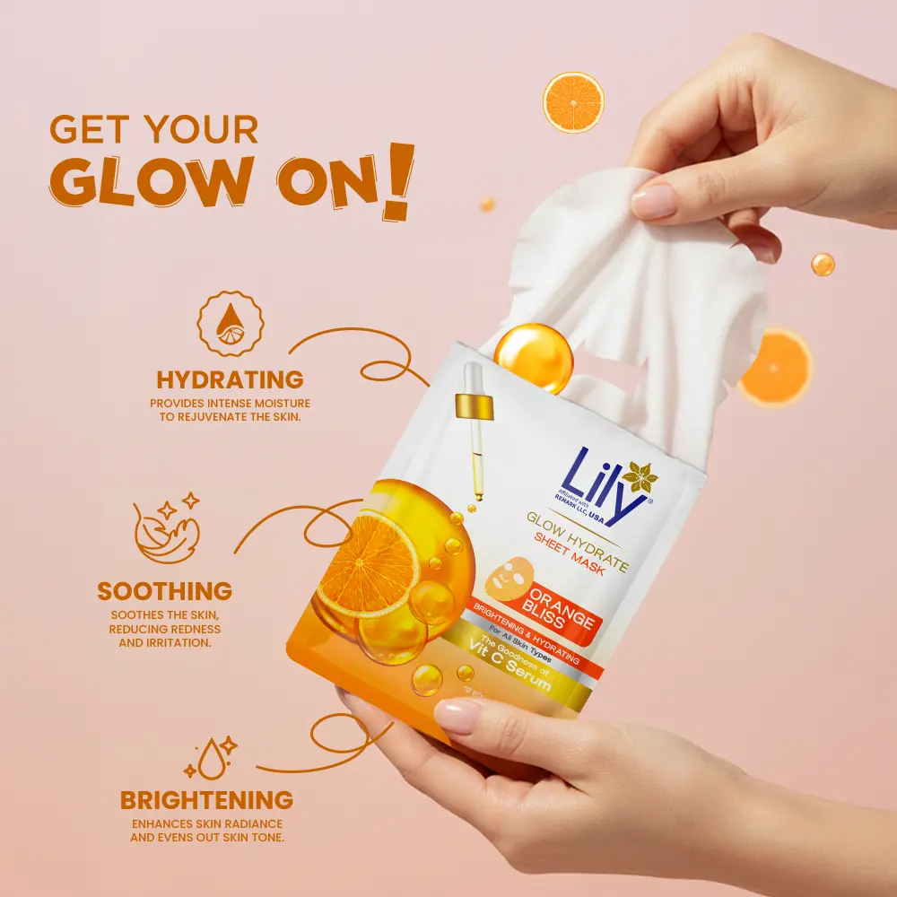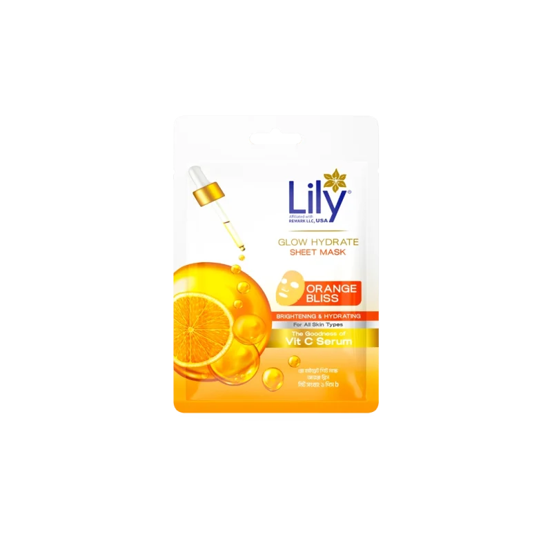 Lily Glow Hydrate Sheet Mask (Orange Bliss) uncovers your natural radiance with every use. Infused with Vitamin C serum, this mask offers nourishing benefits in just 15 minutes—brightening, deep hydration, and soothing skin. With regular use, skin becomes softer, more refined & smoother, revealing a healthy glow.