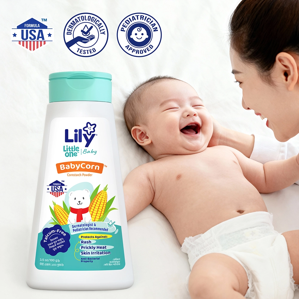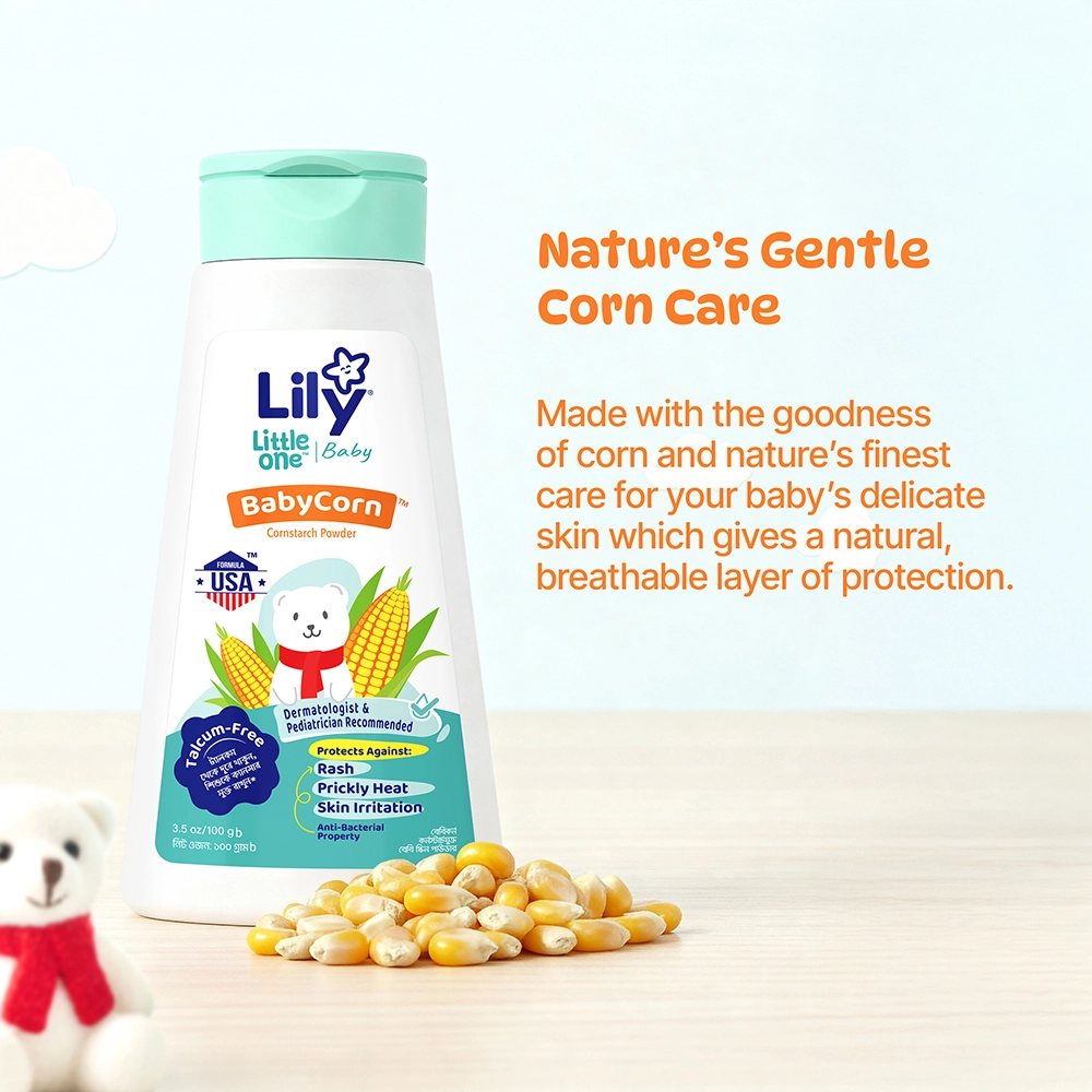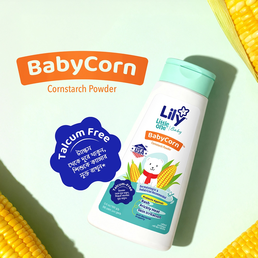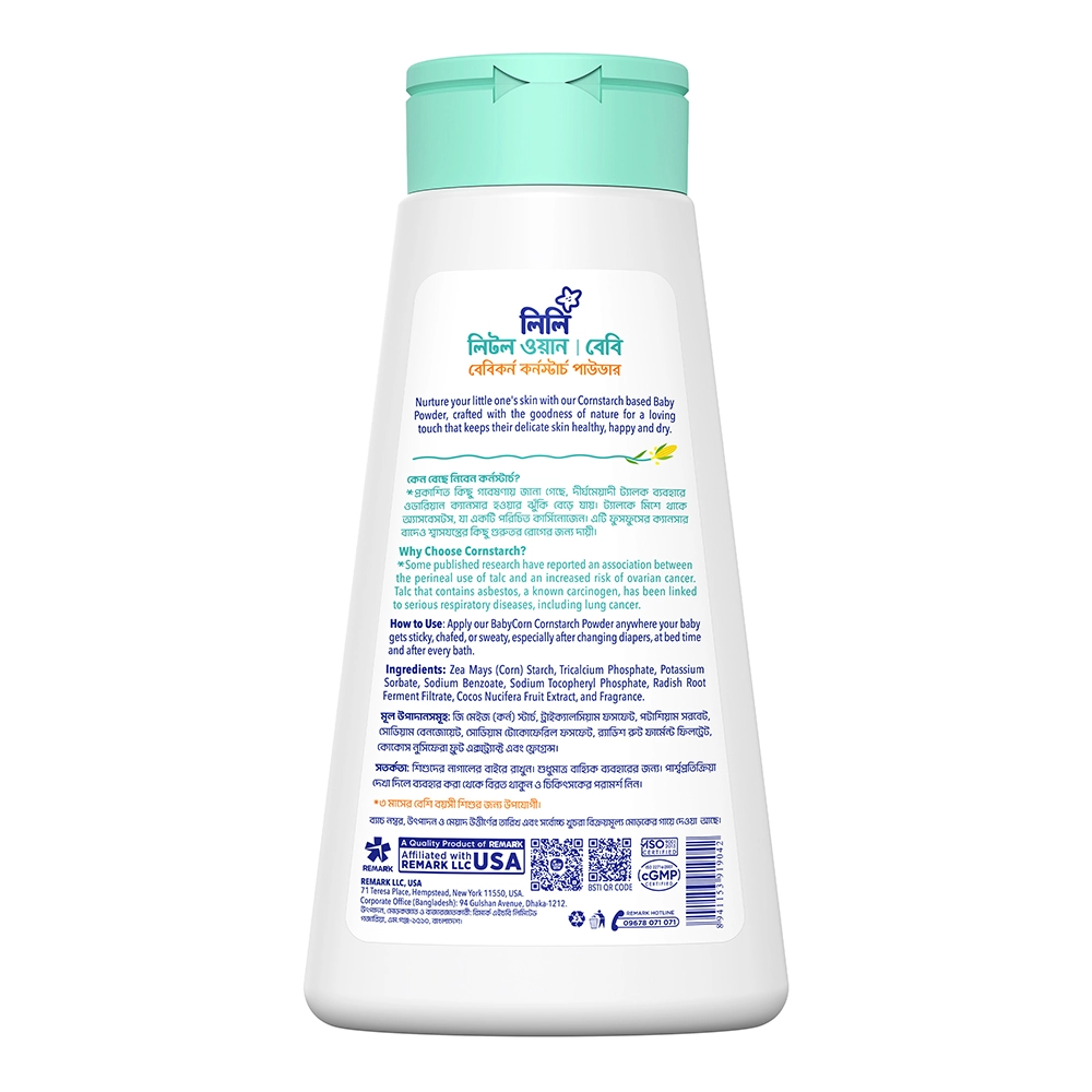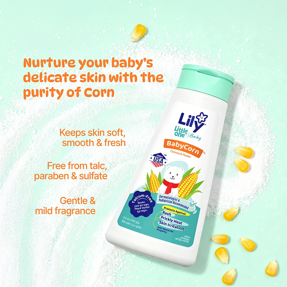 Lily Little One BabyCorn Cornstarch Powder nurturs baby’s delicate skin with the goodness of cornstarch which make their delicate skin healthy, happy and dry.
