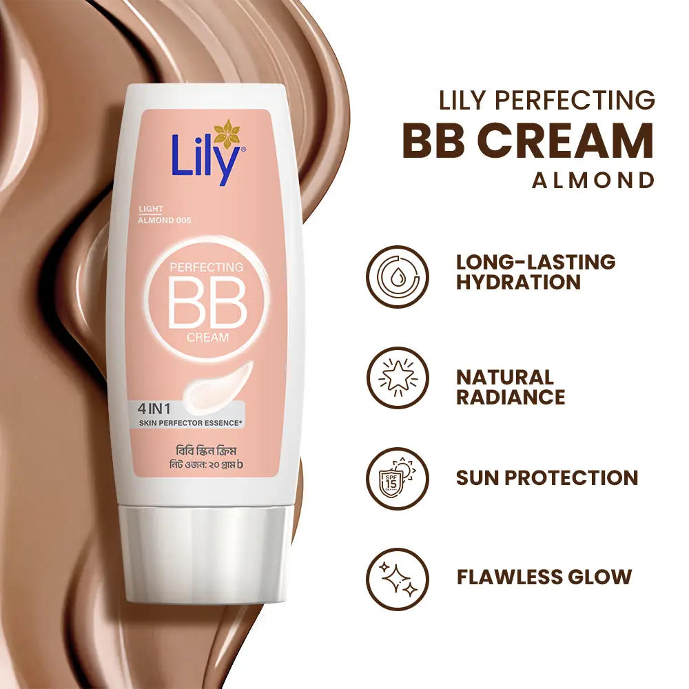 | Lily Perfecting BB Cream is your go-to multi-tasking beauty essential. This 4-in-1 Skin Perfector Essence provides a natural, flawless finish while delivering deep hydration, sun protection, and a radiant boost. Infused with Vitamin C, it enhances your complexion, leaving your skin glowing and protected all day long. |
