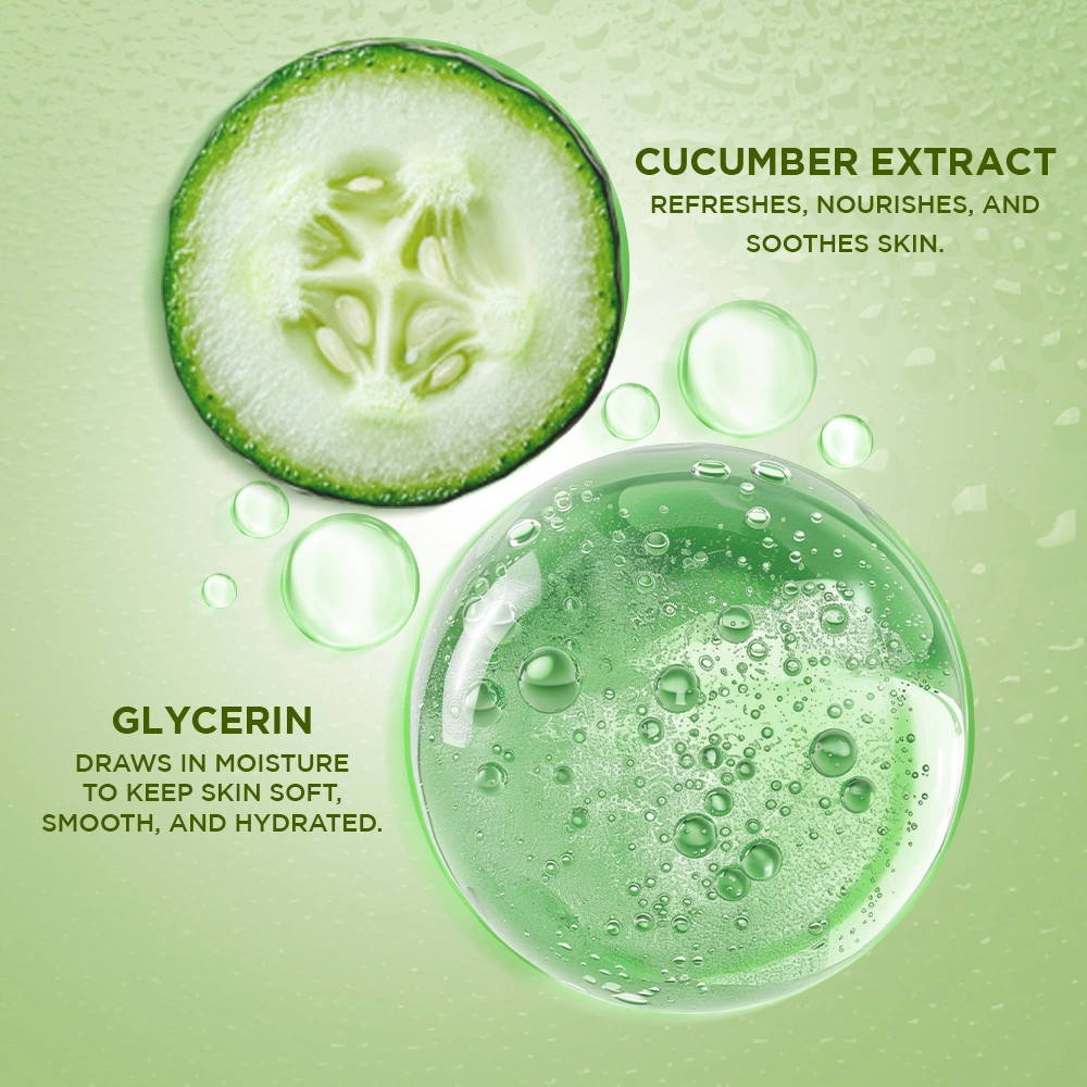 * Cucumber Extract – Refreshes, nourishes, and soothes skin.