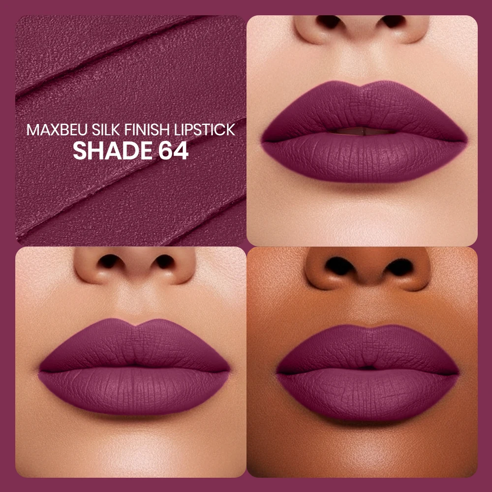 Max Beu Silk Finish Lipstick enhances your lips with vibrant color and smooth, comfortable wear, embodying luxury without compromise. This lipstick features a buildable formula enriched with Almond Oil to nourish and hydrate, delivering a silky texture that glides on effortlessly. Enjoy soft, moisturized lips with every application while maintaining vivid, long-lasting color.