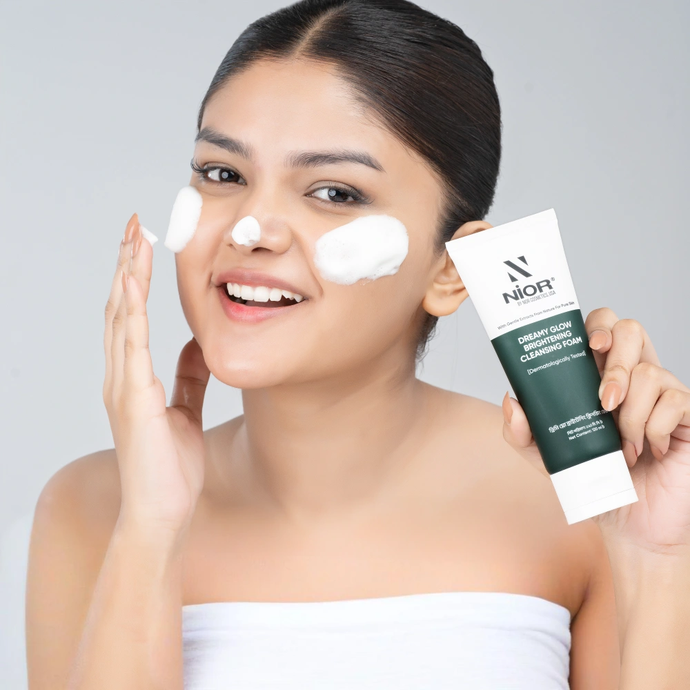 NIOR Dreamy Glow Brightening Cleansing Foam is a nourishing cleanser that contains niacinamide, a gentle extract from nature such as fruit extracts which brightens up the skin and keeps the skin healthy.