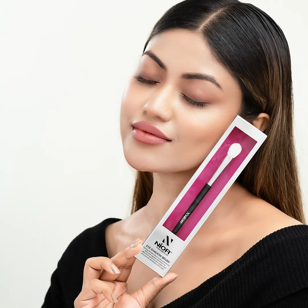 NIOR Eye Shadow Brush features a fluffy, tapered design ideal for applying and blending eyeshadow. Its shape ensures precise application and enhances the dimension of your eyes by reaching effortlessly into the crease.Features & Details