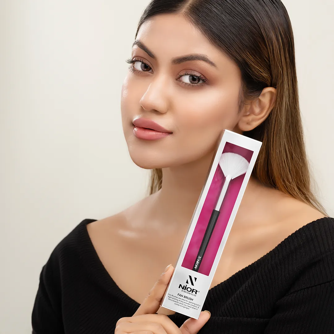 NIOR Fan Brush is ideal for applying a light dusting of powdered products, making it indispensable for achieving a precise and subtle highlight on the temple of the cheek. Its design ensures even application, perfect for creating a natural glow with minimal effort.Features & Details