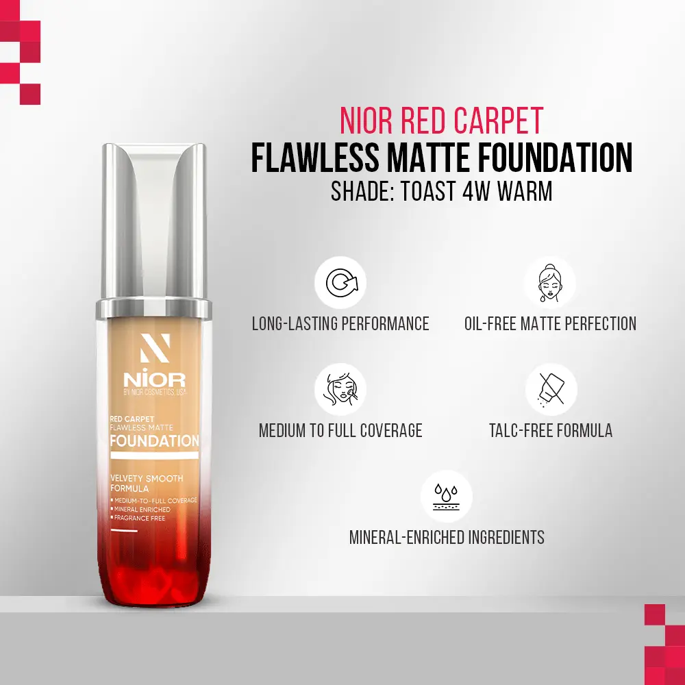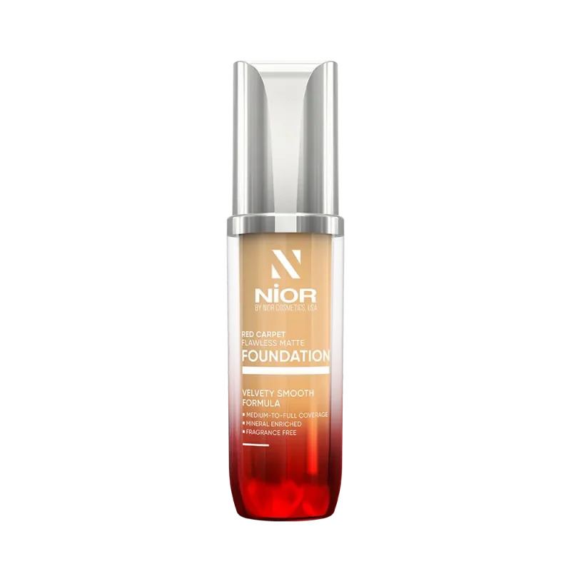 | Channel red carpet elegance with Nior Red Carpet Flawless Matte Foundation. This miracle formula provides flawless medium to full coverage with a nourishing mineral-enriched blend, crafted without talc, parabens, or fragrance. Stay picture-perfect all day with its waterproof and transfer-resistant formula, and step into the limelight, shining like a star. |