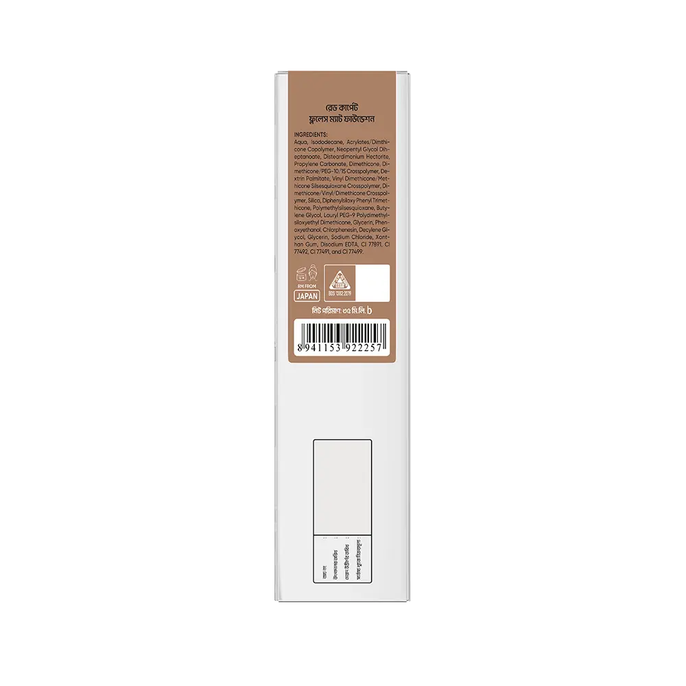 | * Medium to Full Coverage: Provides medium to full coverage. * Oil-Free Matte Perfection: Controls oil to maintain a matte finish. * Long-Lasting Performance: Ensures long-lasting wear. * Talc-Free Formula: Protects skin with talc-free formula. * Mineral-Enriched Ingredients: Helps nourish and support skin health. |