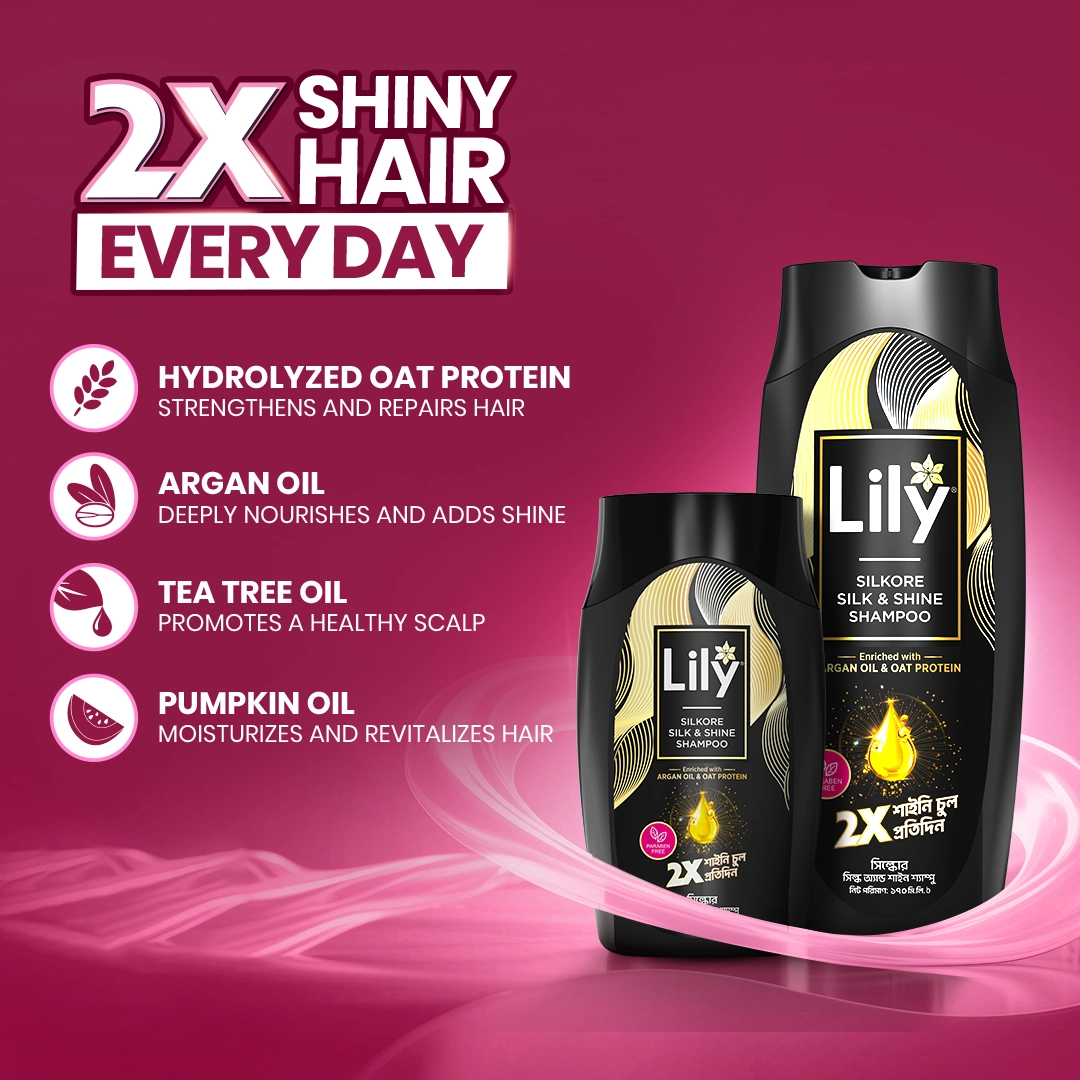Silkore Silk & Shine Shampoo transforms your hair care routine with its advanced formula designed to deliver 2X shine for a visibly healthier look. Enriched with natural oils and our unique Silk & Shine Complex, this shampoo provides deep moisturization, effectively combating dryness and frizz, leaving your hair smooth and shiny.