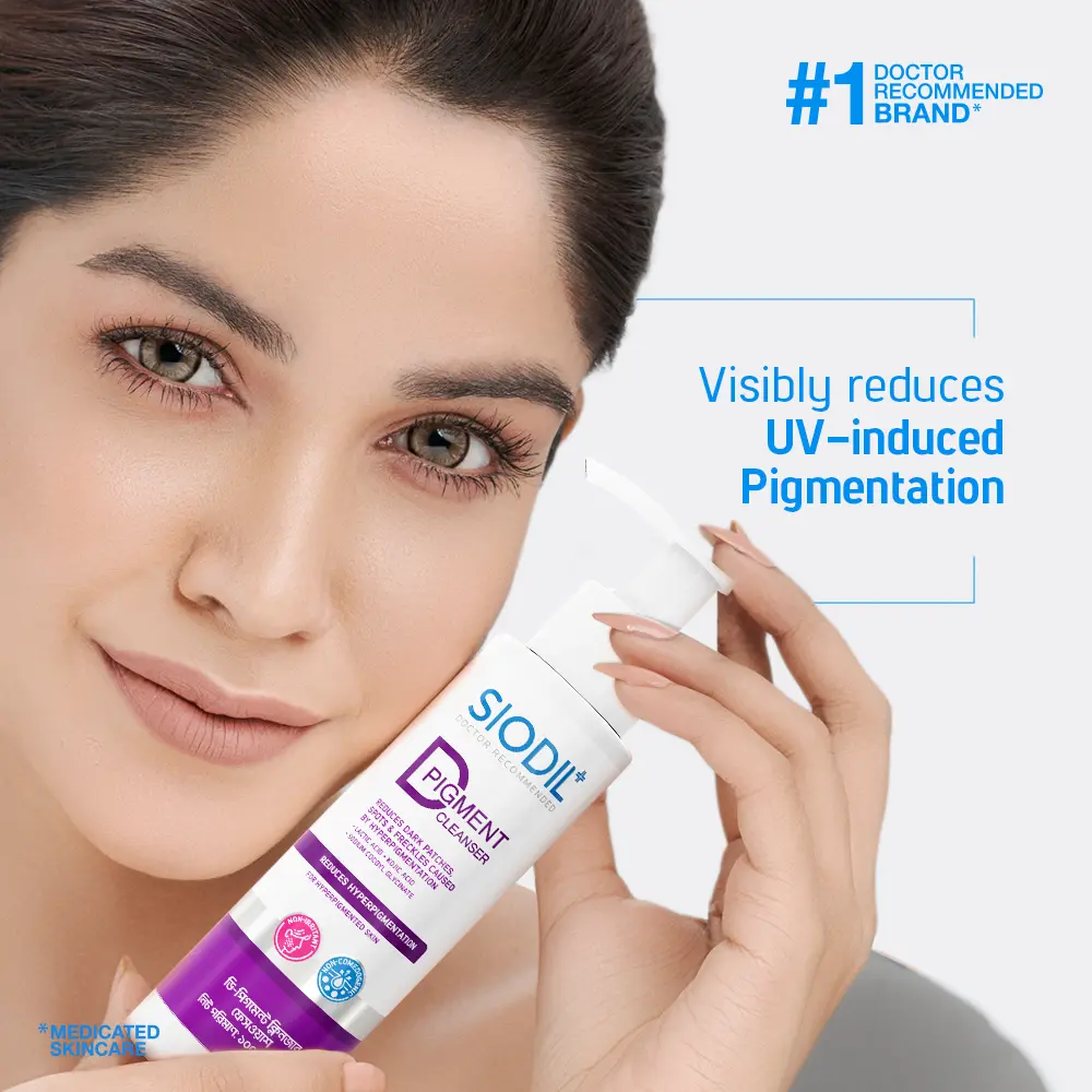 Siodil D-Pigment Cleanser is formulated with active ingredients like Lactic Acid, Kojic Acid, and Sodium Cocoyl Glycinate that help cleanse and treat hyperpigmentation (sunspots, melasma, and age spots) while improving skin tone and texture.