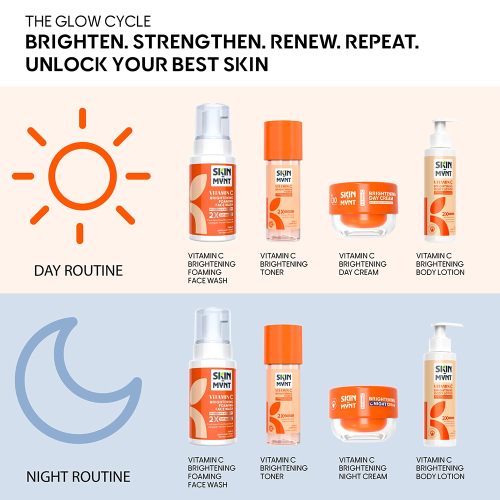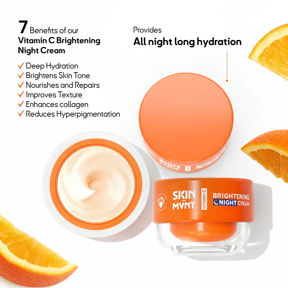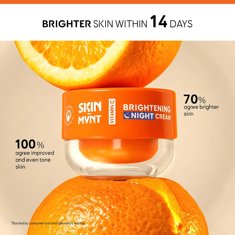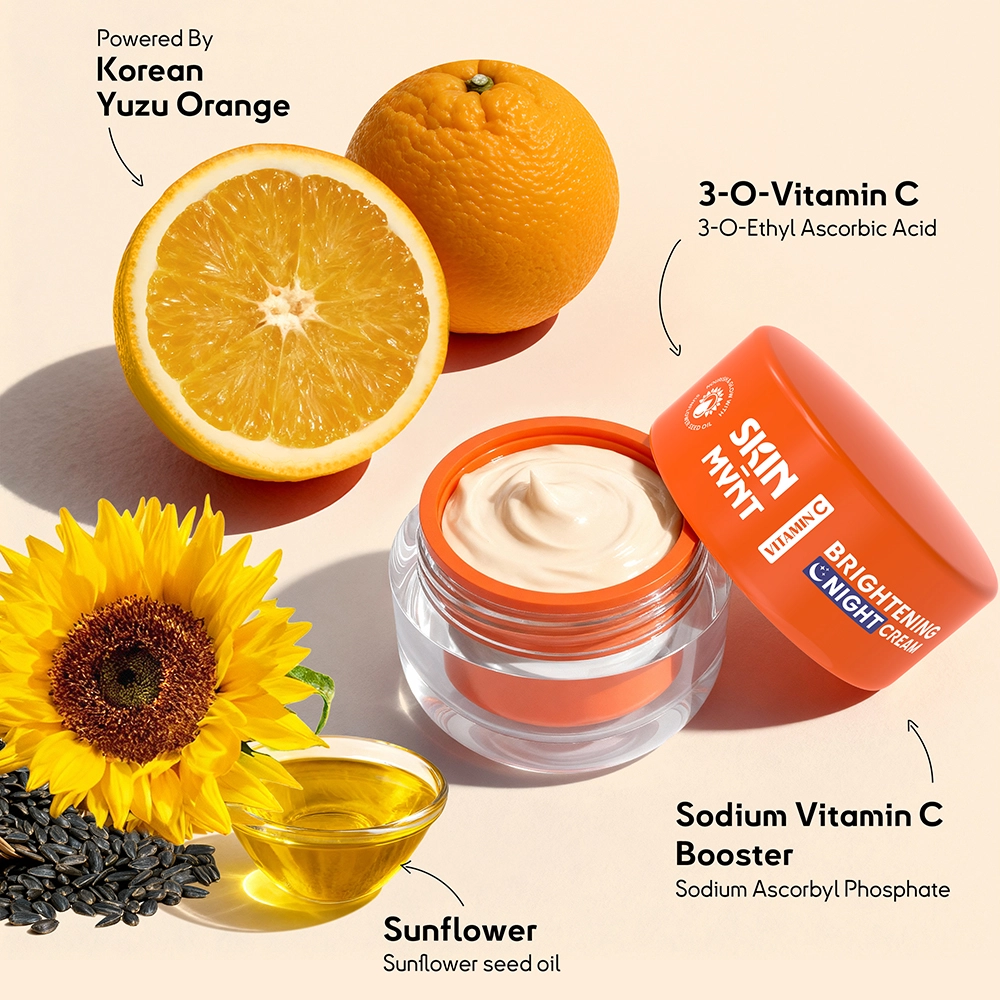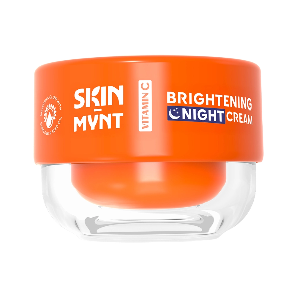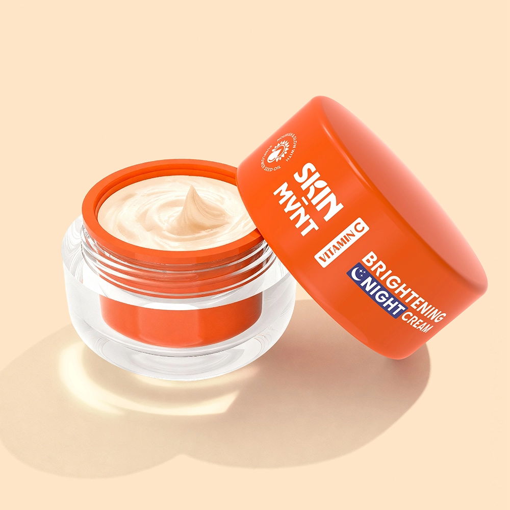 Wake up to radiant skin with Skin Mynt Vitamin C Brightening Night Cream. This non-greasy formula, enriched with a Synergistic Vitamin C Booster and Citrus Junos (Yuzu) Fruit Extract, nourishes your skin overnight, leaving it glowing and revitalized. See a noticeable brightness in just days.