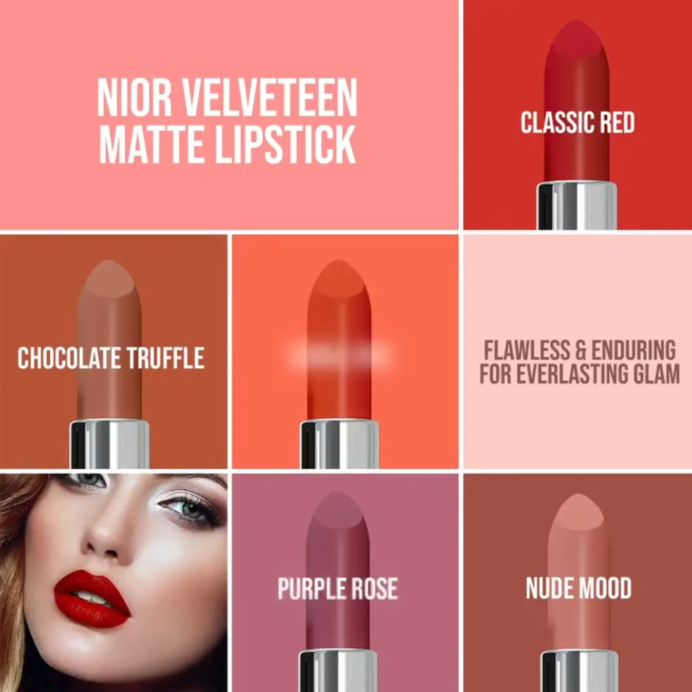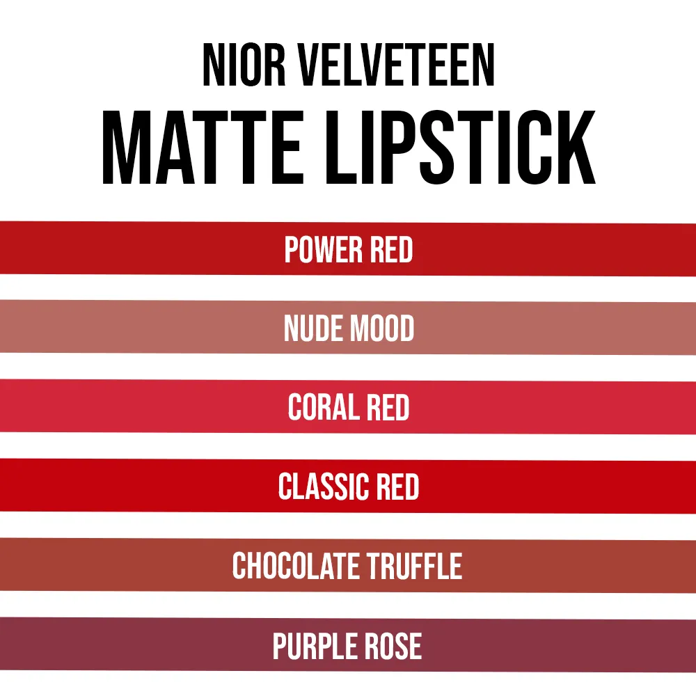 NIOR Velveteen Matte Lipstick seals your pout with a sumptuous touch of velvety perfection. Crafted for sophistication, our long-lasting formula delivers a seamless finish, rich in pigmentation, and flawlessly smudge-proof.